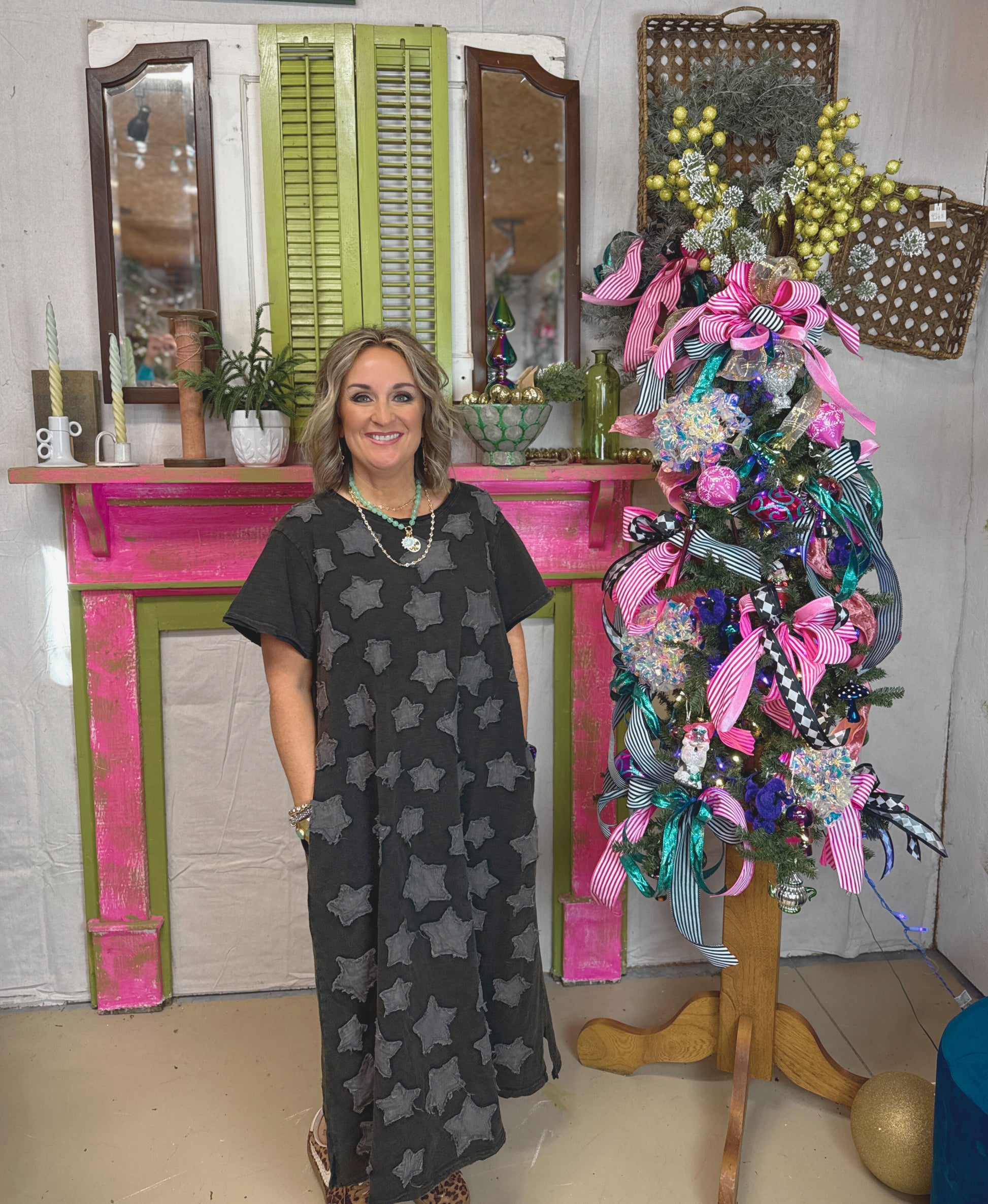 Twirl under the stars in this enchanting Starry Night Dress! Featuring a dreamy celestial print with twinkling stars scattered across a rich, deep backdrop, this piece brings a touch of cosmic magic to your wardrobe. Perfect for those who love to make a statement, it's ideal for themed parties, or whenever you want to add a sprinkle of wonder to your day.